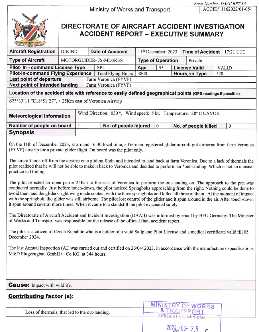 Administrateur Posté(e) mardi à 08:32 Signaler Posté(e) mardi à 08:32 >>> https://mwt.gov.na/documents/2671063/2770281/D-KIBD+Final+Report.pdf/48cb9b5a-8b55-b522-40bb-a24f47cdaad4?t=1719830237352 Citer Une même passion, 3 sites : http://www.planeur.net - http://www.volavoile.net - http://www.NetCoupe.net